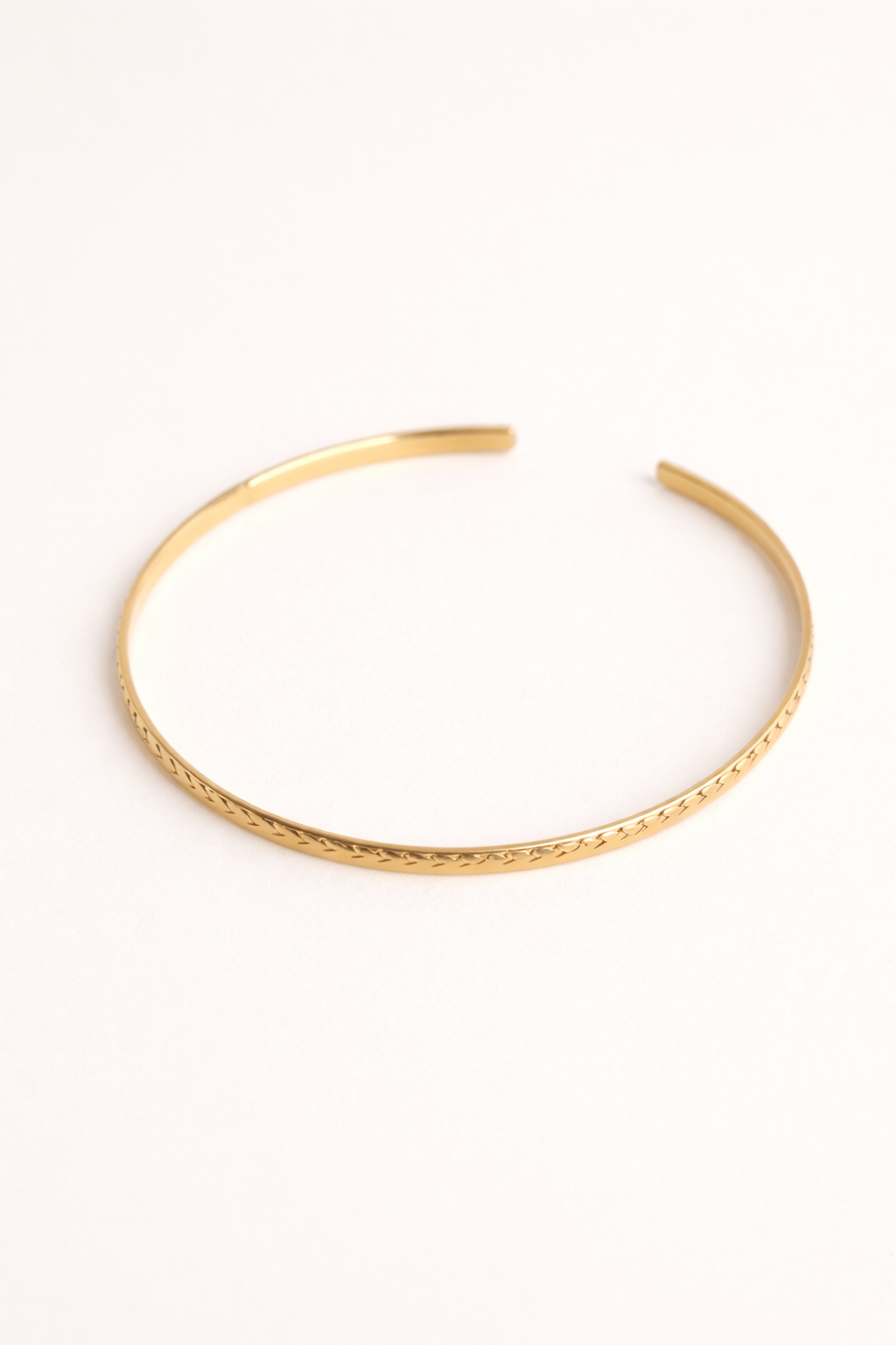 Pour venir compléter les collections de bracelets faits main, découvrez le jonc Kiran et son design cordé et strié, doré à l'or fin 24 carats. Les joncs sont pensés pour venir sublimer toutes vos compositions de bracelets.